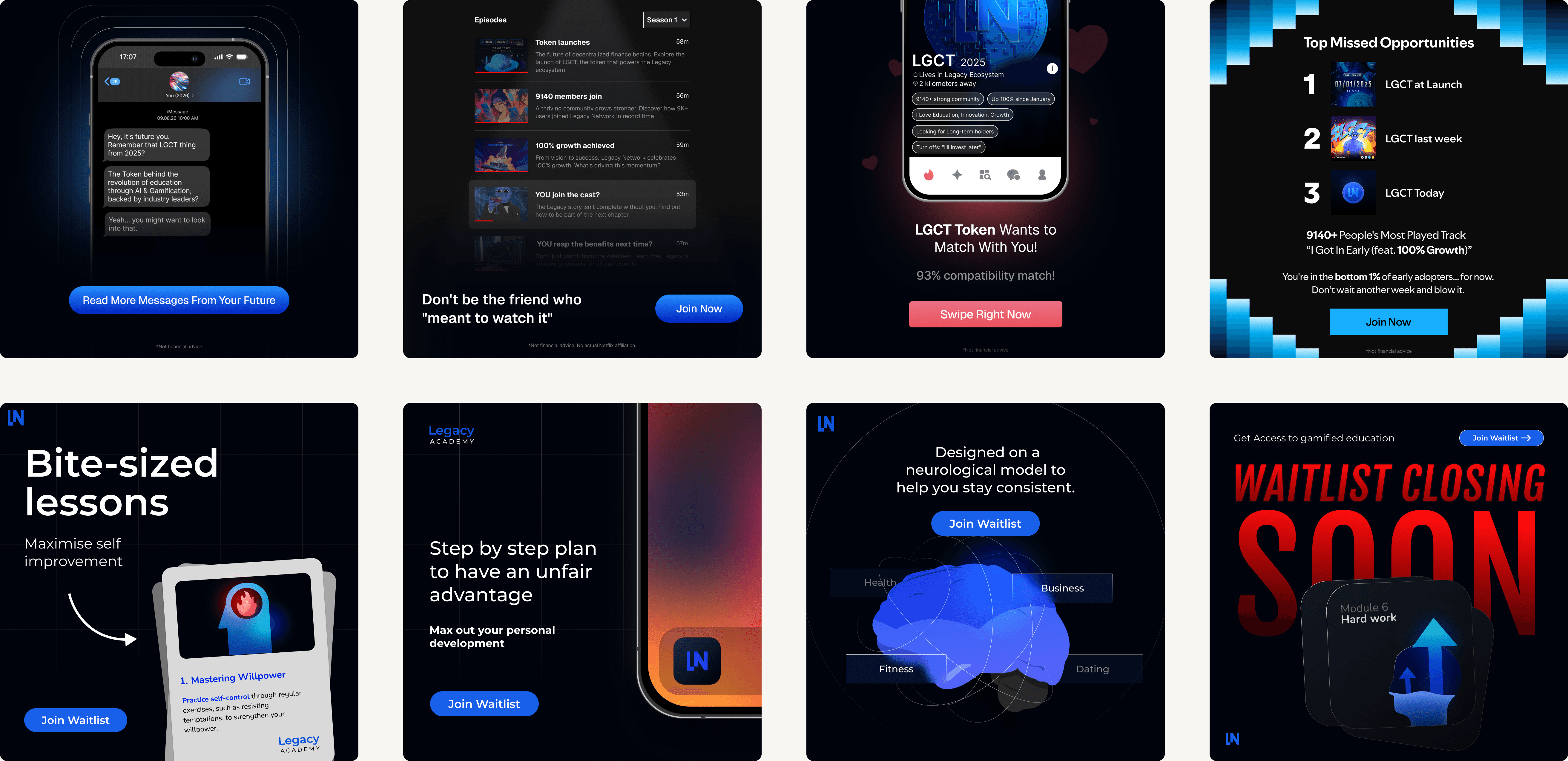 Designed high-impact ad creatives for a 1M+ download B2C app - Legacy Academy